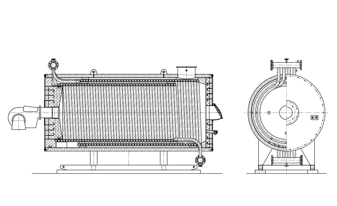7、流程設(shè)計:煙氣三回程,介質(zhì)流經(jīng)內(nèi)外盤管,流速均勻,運(yùn)行安全、穩(wěn)定。